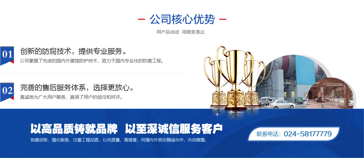 2004;GB/T28001-2011/OHSAS18001:2007;GB/T19001-2008/ISO9001:2008認證 體系,取得了化工防腐蝕施工資質等級一級單位,遼寧省腐蝕與防護學會防腐施工專業(yè)委員 會主任委員會主任委員單位,是中國石油撫順石油化工公司網(wǎng)內成員單位。幾年來本著“客 戶為尊、精益求精”的服務宗旨,服務于基礎設施、石油、化工、治金、化纖、能源、礦山、 核電站、海洋工程等眾多行業(yè)企業(yè)。 ![]() ![]() ![]() ![]() |